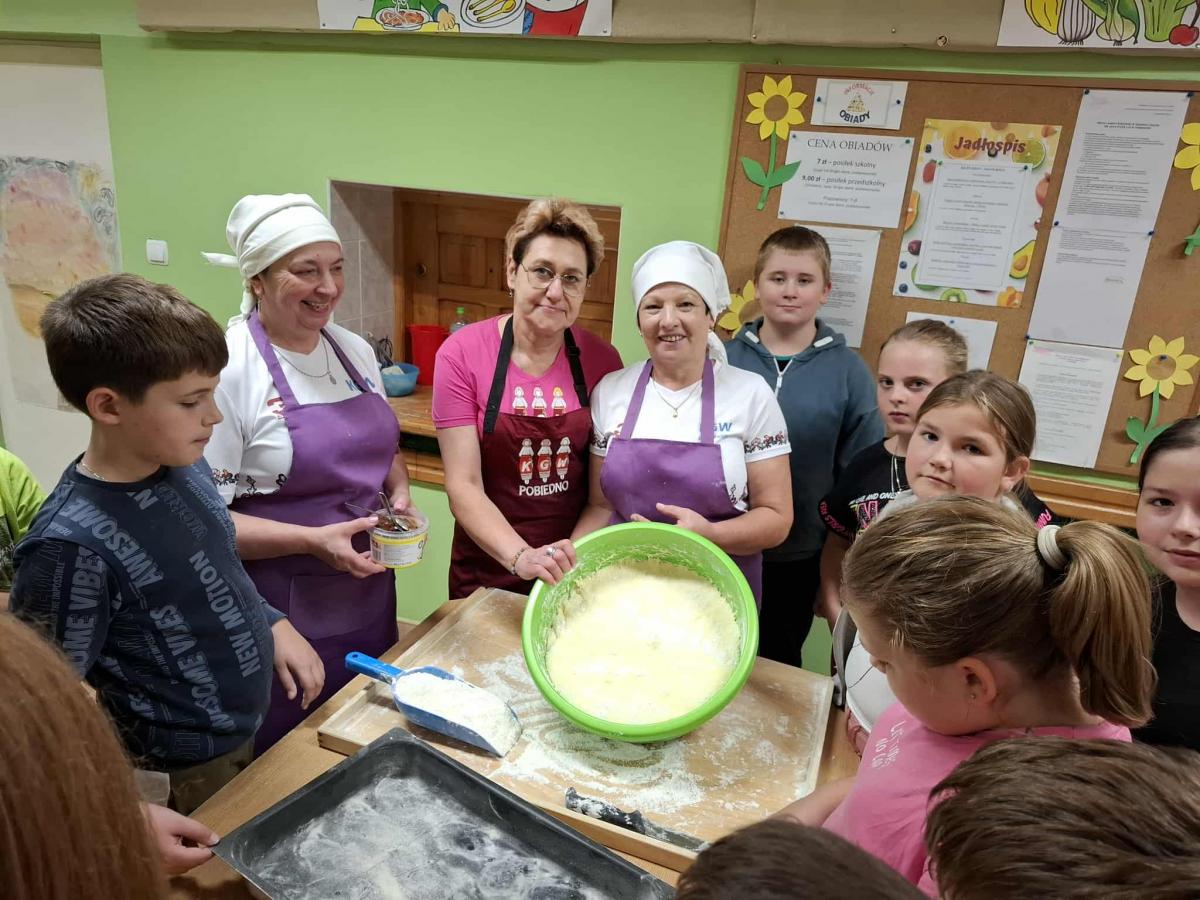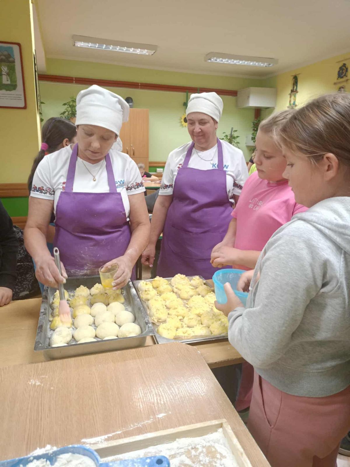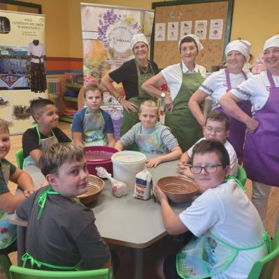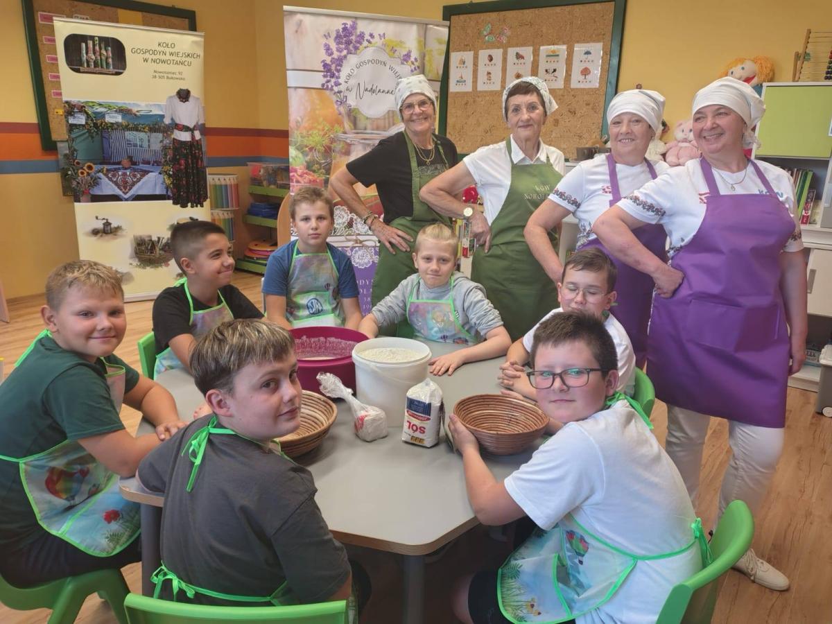 Dziękujemy paniom z Kół Gospodyń Wiejskich za obecność, cierpliwość i chęć dzielenia się swoją wiedzą. Dzięki nim dzieci nie tylko mogły spróbować wyjątkowych smaków, ale także doświadczyć żywej tradycji, która łączy pokolenia i przypomina, że tradycja nie jest tylko historią, ona żyje, jeśli się nią dzielimy.
