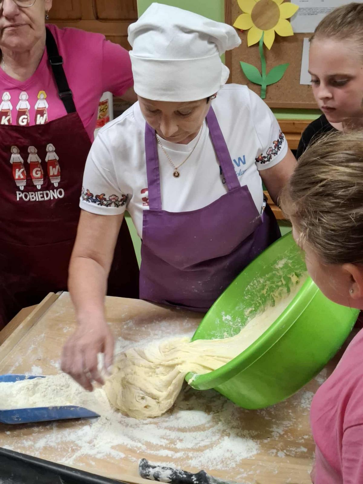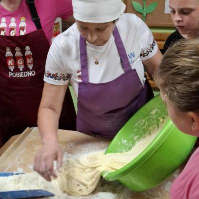 Przeprowadzone w szkołach warszaty były jak podróż w czasie, do chwil, gdy zapach świeżo pieczonego chleba wypełniał domy, a wspólne pieczenie jednoczyło rodziny i sąsiadów. Każdy bochenek i każda bułeczka pachniały nie tylko tradycją, ale też dziecięcą radością i ciekawością świata.