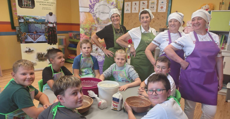 Pod okiem pań z Kół Gospodyń Wiejskich z Nadolan,Nowotańca, Poiedna i Bukowska dzieci wyruszyły w niezwykłą podróż do świata dawnych smaków.