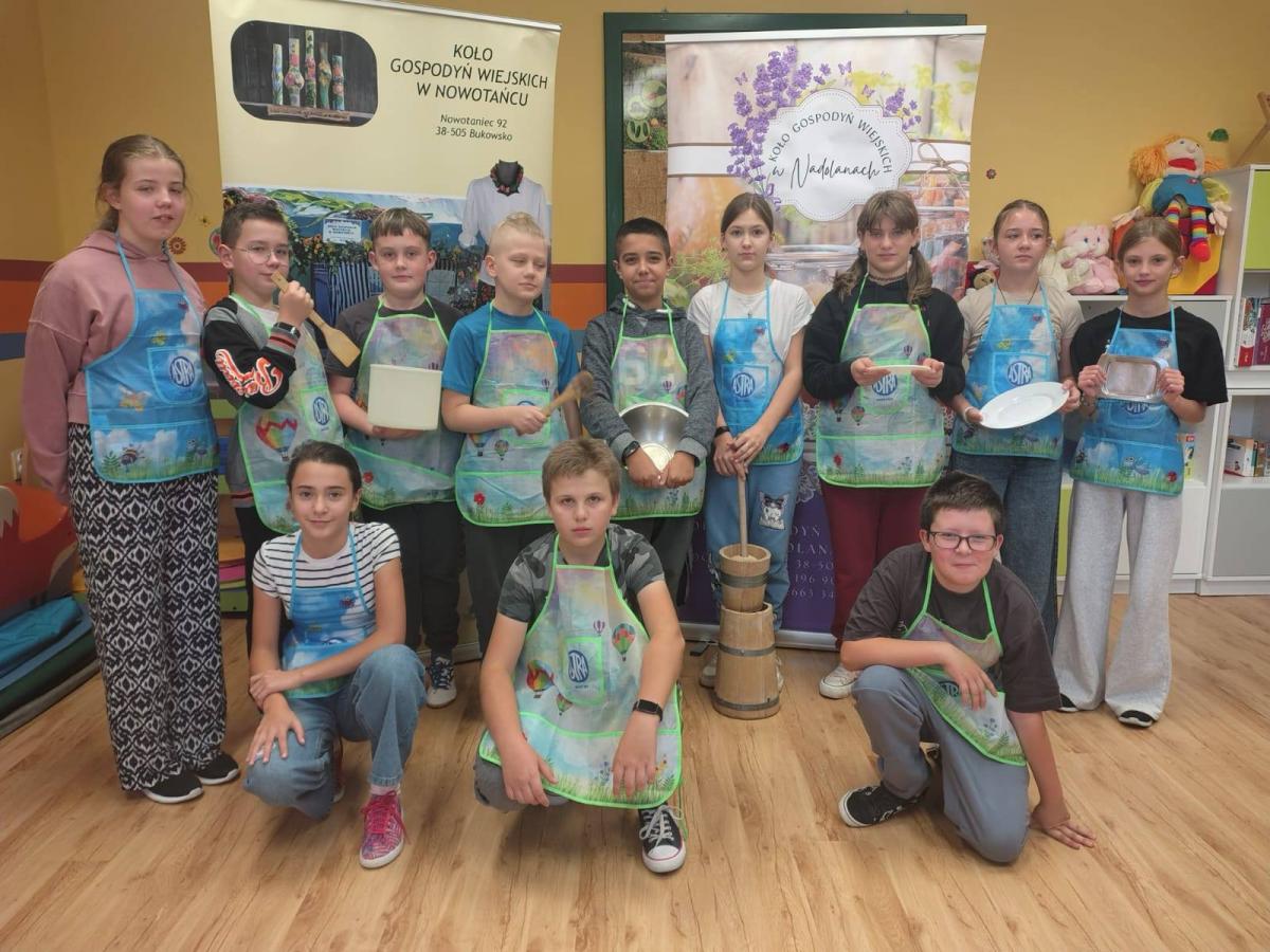 W październiku uczniowie mieli okazję uczestniczyć w niezwykłych warsztatach kulinarnych, które poprowadziła Lucyna Jasińska wraz z Danutą Kozimor z Koła Gospodyń Wiejskich w Nadolanach.