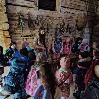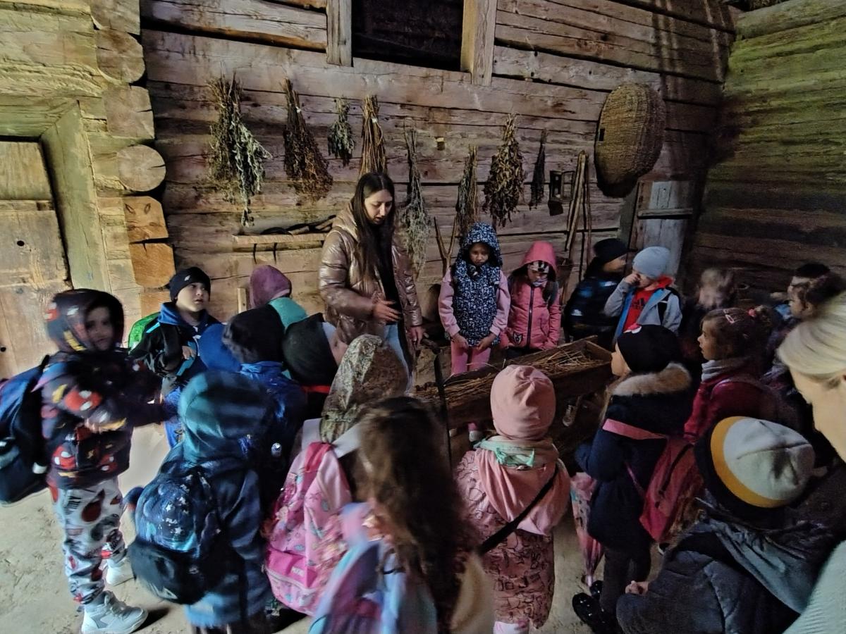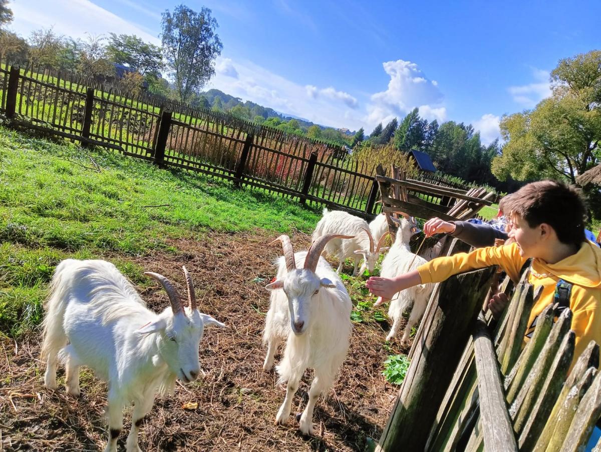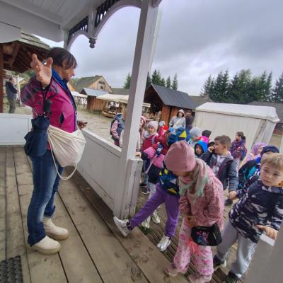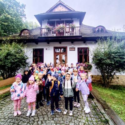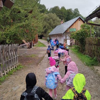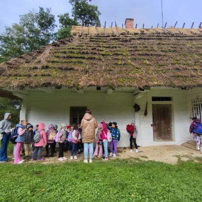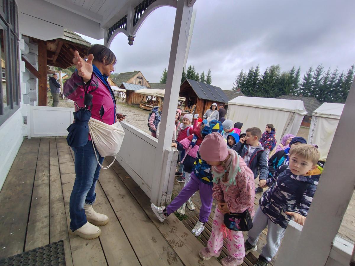 Zwiedzanie skansenu także dostarczyło wielu emocji. Szczególne wrażenie zrobiły na dzieciach powozy w karczmie.
