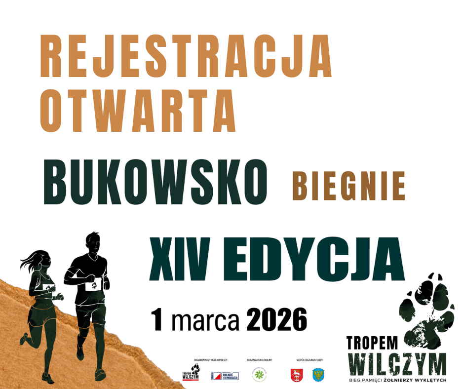Towarzystwo Przyjaciół Ziemi Bukowskiej, przy współpracy z Gminą Bukowsko oraz Powiatem Sanockim, po raz kolejny zaprasza do udziału w wydarzeniu sportowo-patriotycznym Bieg Tropem Wilczym – Bukowsko 2026, będącym częścią ogólnopolskiego Biegu Pamięci Żołnierzy Wyklętych.