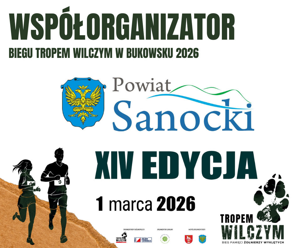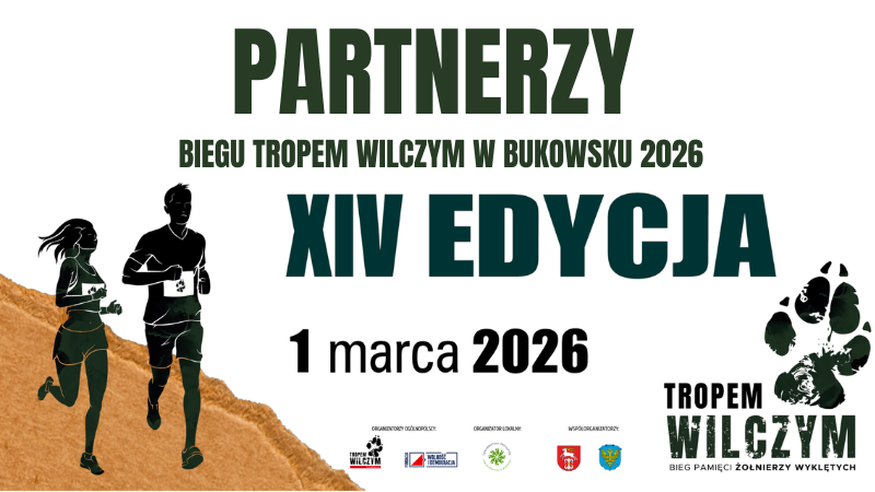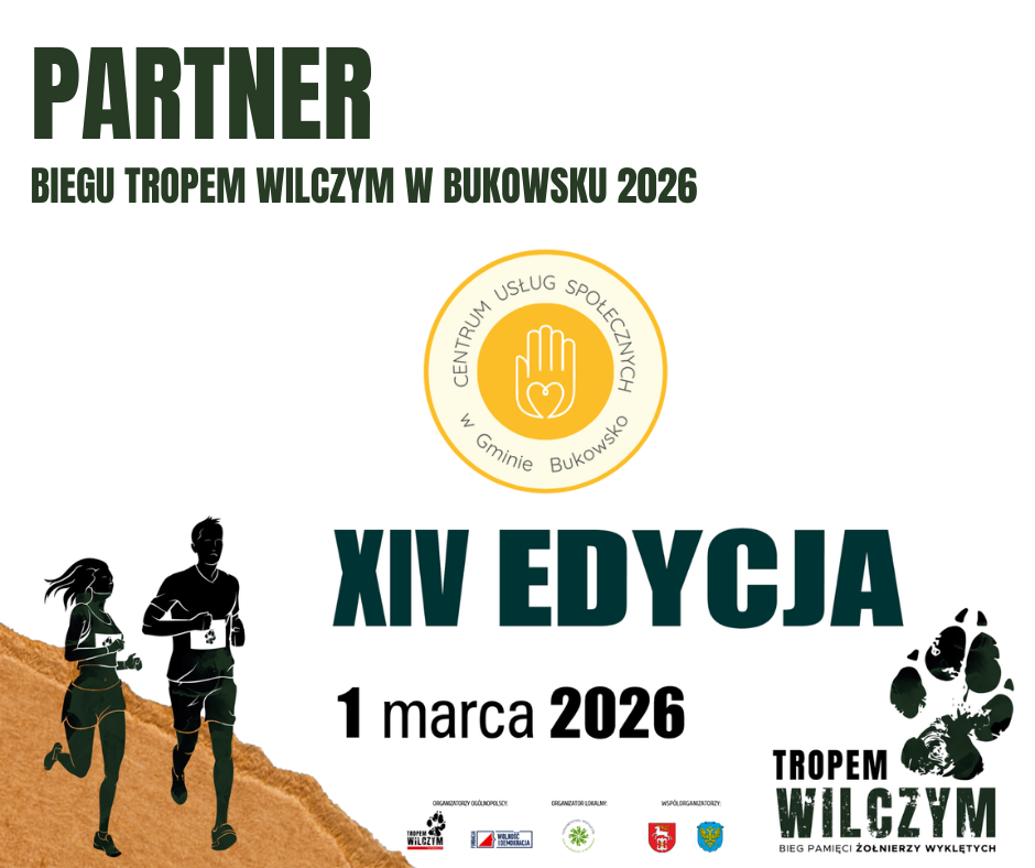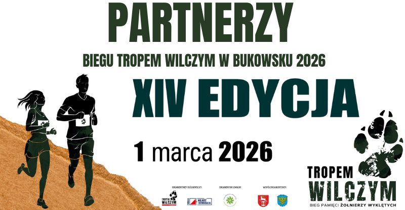 Organizacja tegorocznej edycji Biegu Tropem Wilczym w Bukowsku będzie możliwa dzięki zaangażowaniu instutucji samorządowych Gminy Bukowsko i Powiatu Sanockiego, które wspierają tą cenną inicjatywę sportowo-społeczną od samego początku , a także naszych partnerów, na których także co roku możemy liczyć: druhów z OSP KSRG Bukowsko, pasjonatów historii z Muzeum Militariów i Techniki w Woli Sękowej i Podkarpackie Stowarzyszenie Poszukiwaczy "Ocalić od Zapomnienia" , leśników z Nadleśnictwo Lesko, Lasy Państwowe, pracownic Centrum Usług Społecznych w Bukowsku oraz sanitariuszy z Bieszczadzkie Pogotowie Ratunkowe SP ZOZ w Sanoku- zabezpieczających medycznie wydarznie.